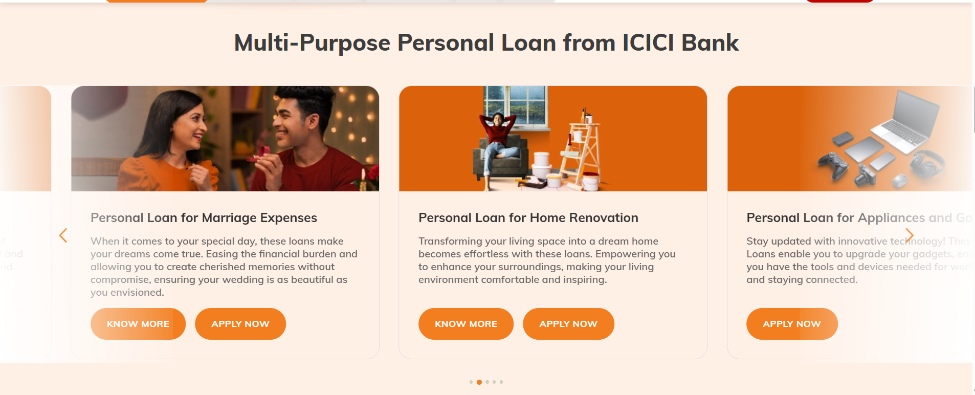 - Scroll down and click Apply Now under Personal Loan for Renovation.